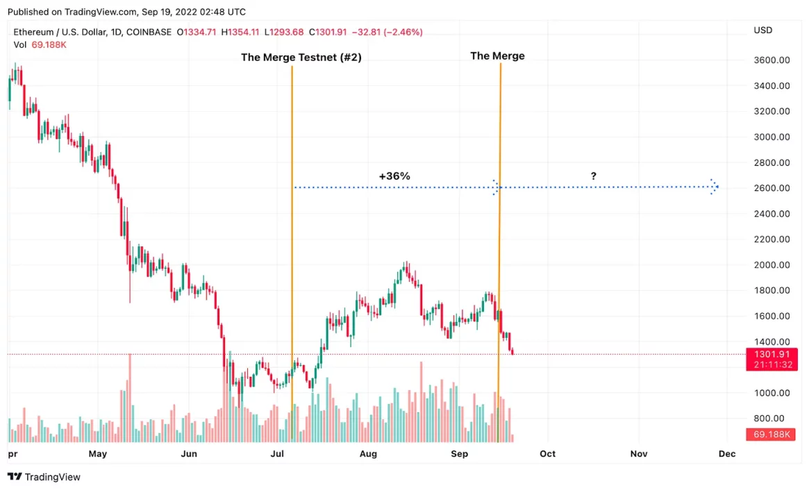 在合并结束后,好多人想要知道合并潜在性利好消息是不是已经表现在了 ETH 价格方面?