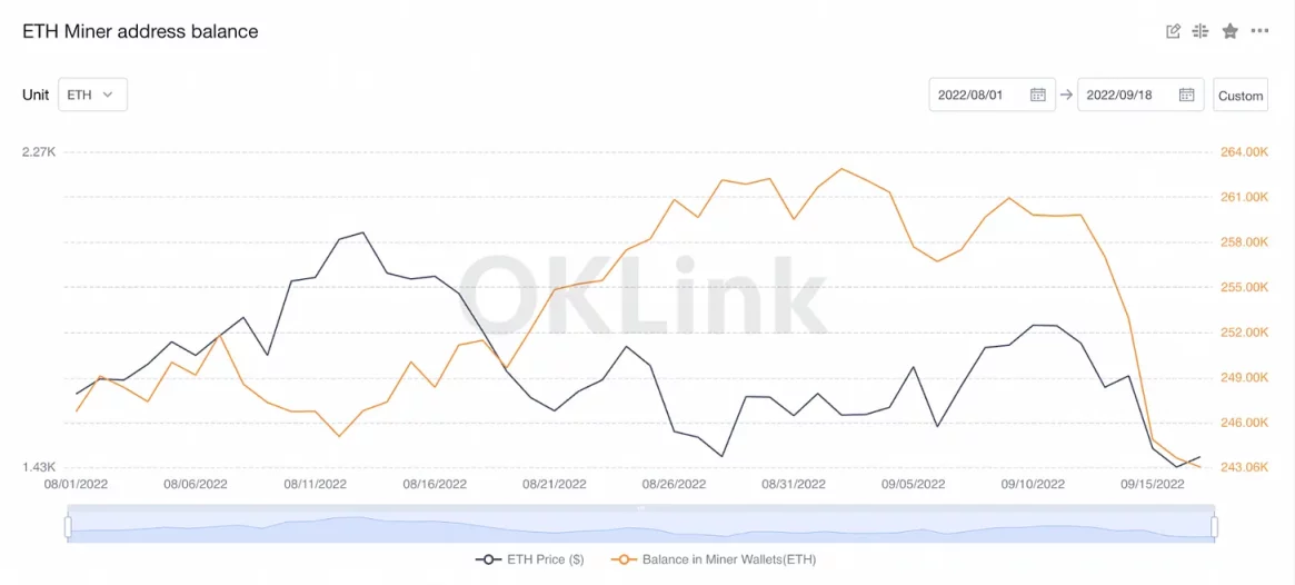 我们现在正面对无法预料未来的发展,合并已完成,但正前方仍然是一个疑团。ETH 在本周末跌到 1400 美金下列,从数据看,这也许归功于挖矿已经售卖学生的 ETH,及其这周美联储会议的另一次潜在性升息。