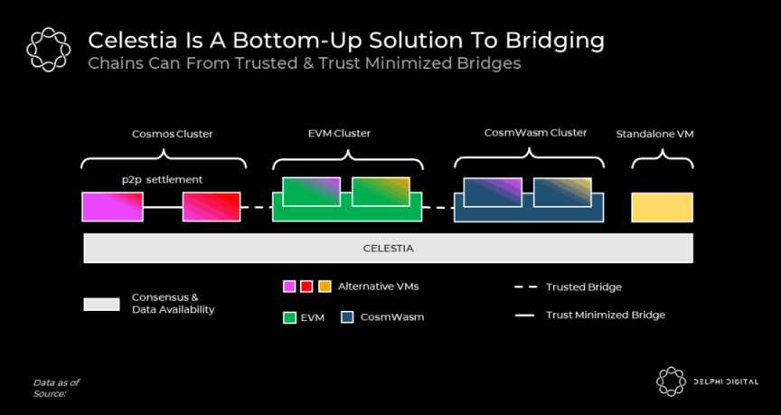 他们必须通过 Cevmos 等构架来根据 Trusted Bridge 与其它 Cluster 或是带 IBC 互联网完成相通,构架上没有那么简约,与此同时定义都比较新。