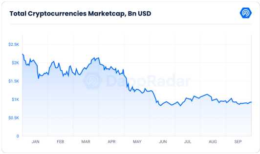 然而,市场开始在1万亿美元左右震荡,而以太坊合并等关键事件并未导致价格大幅上涨。 同样,宏观经济前景恶化导致市场其余部分下跌。