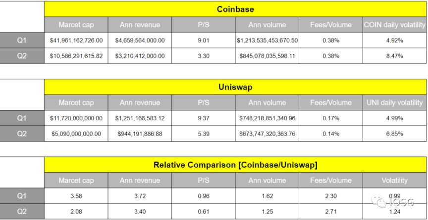 征缴协议费能力:Coinbase 有超出 1 亿登记注册的实名认证客户,而「仅有」550 万只不一样地址以前与以太币里的 Uniswap 互动交流过。除此之外,Coinbase 可能会有一个更有黏性的用户群体,而 Uniswap 的非常大一部分成交量是由聚合器所获得的。