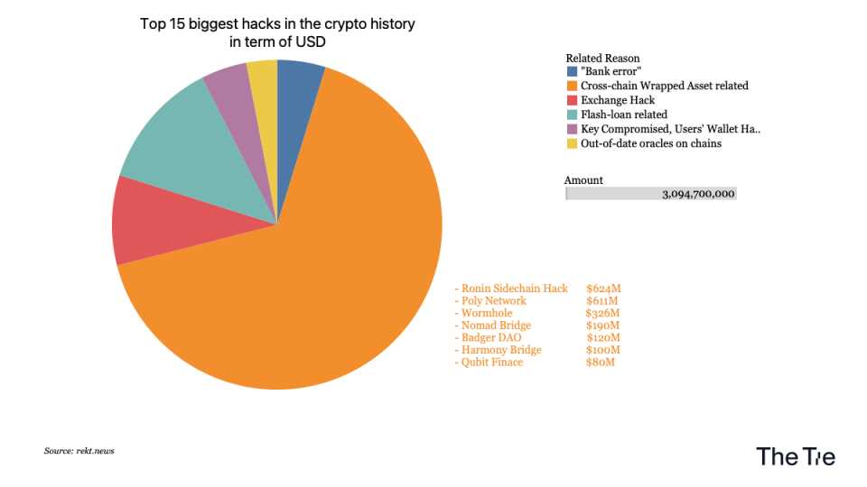 这种风险性并不是假定,在过去几年里,仅前 15 大数据加密货币黑客入侵所形成的损害中,「外包装资产」就占据了 66%,总亏损超出 20 亿美金。