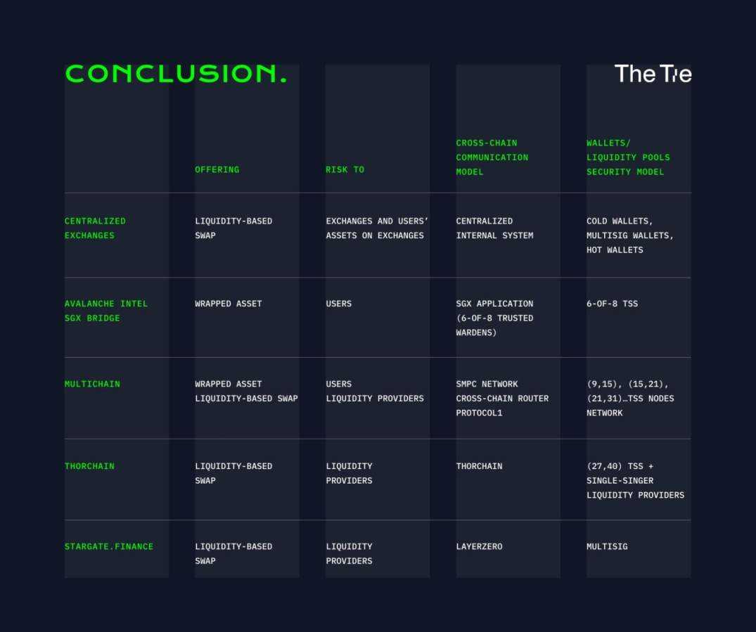 例如:公链 THORchain 应用 RUNE 匹配流通性交换 Token 方法,但是它依然取决于 27/40 幅值签字计划方案 (TSS) 用以保险库资金入站,1/1 单签字计划方案用以保险库资金出来。一切取得成功进攻 THORChain 的有限状态机或 MPC 节点 27/40TSS 都能给 THORChain 的流通性服务提供者产生比较严重风险。在伤害期内,不会主动互换的消费者不容易遭到其他损害,但流通性服务提供者会承担绝大部分的损害。