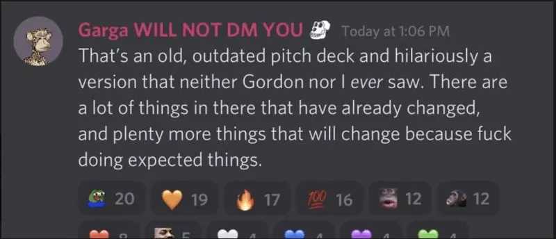 但是,联合创始人 Greg 在 Discord 对这份流传中的 Pitch Deck 内容表示:
