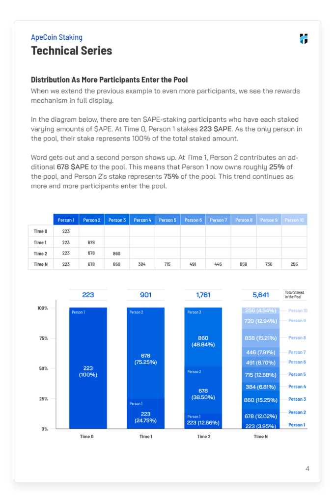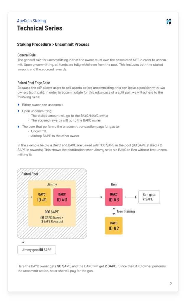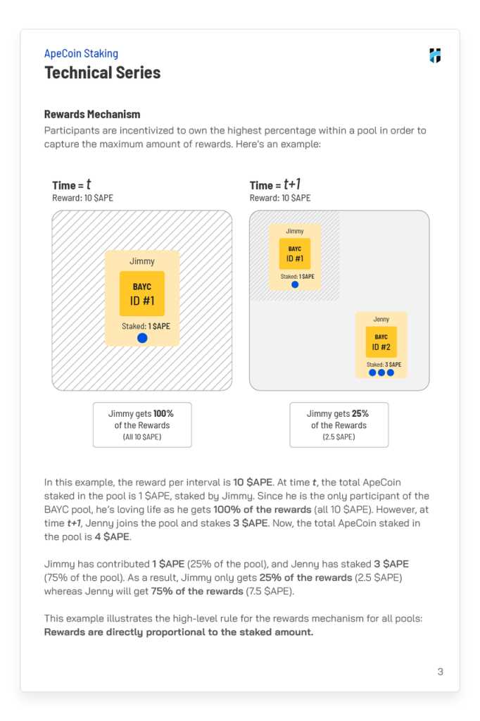 修改质押上限后,尽管仍存在相当大的争议,4 月推出的提案 AIP-22 仍然被社区通过 ,该提案明确了 $APE 质押奖励的释放时间、释放方式。结合 8 月 Horizen Labs 陆续给出的细则,笔者在这里详细解读一下 $APE 质押的方案。
