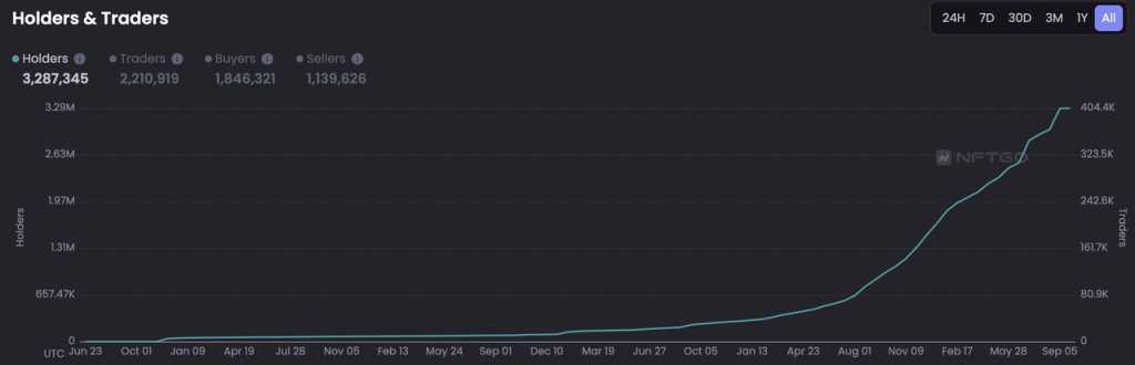 起初,几位创始人将 MAYC 作为路线图的终点,而项目出乎意料的热度则使得团队开始重新思考 BAYC 的发展,并最终成为 NFT 领域最负盛名的领军项目,从 BAYC, MAYC 到 BAKC,以及一系列收购、ApeCoin DAO 成立并开始建设 Otherside 元宇宙。截止目前来看,Yuga Labs 围绕 PFP 构建的商业生态是影响力和触达面最广泛、交付能力最好的加密 IP 商业案例之一。