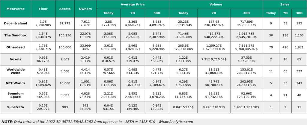 元宇宙项目土地交易数据 10.08
