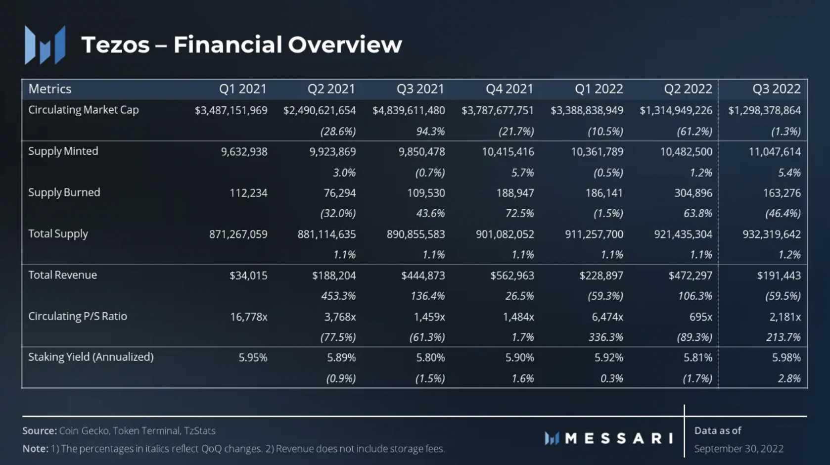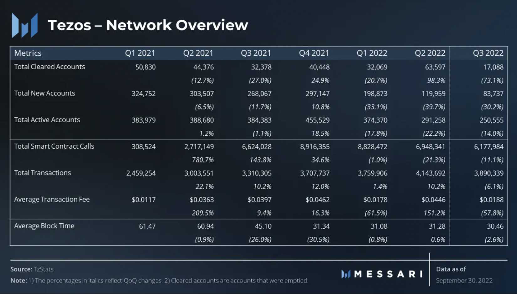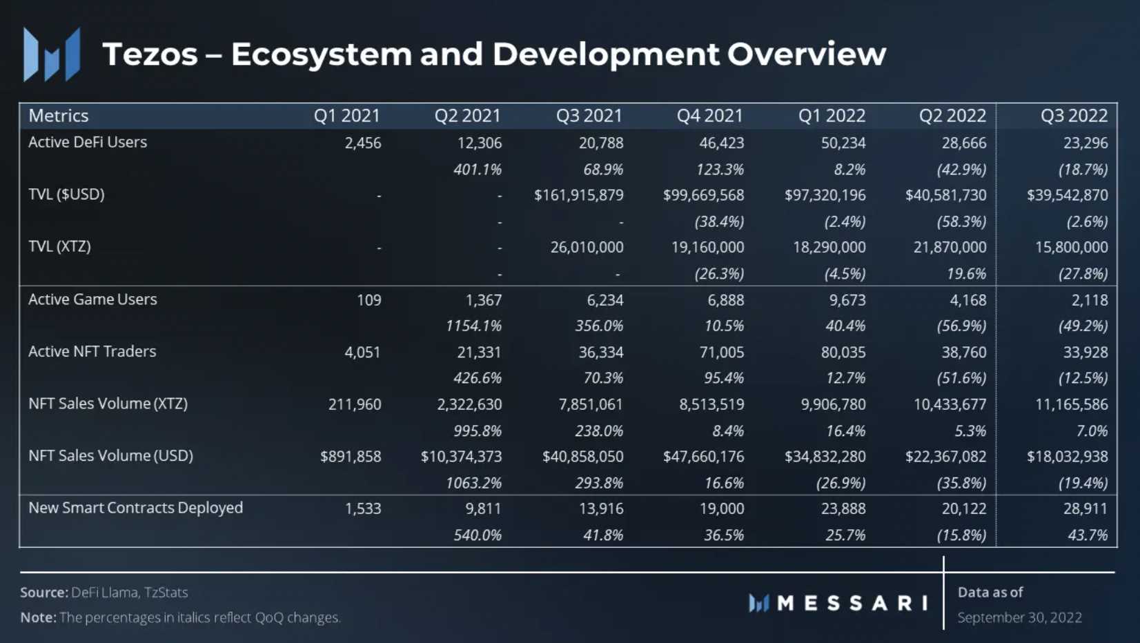 在经历了历史性的第二季度之后,第三季度的亮点大幅减少。加密货币市场整体上涨36%。但最终,由于央行继续采取强硬立场,市场完全回调。总的来说,Tezos的关键绩效指标喜忧参半。