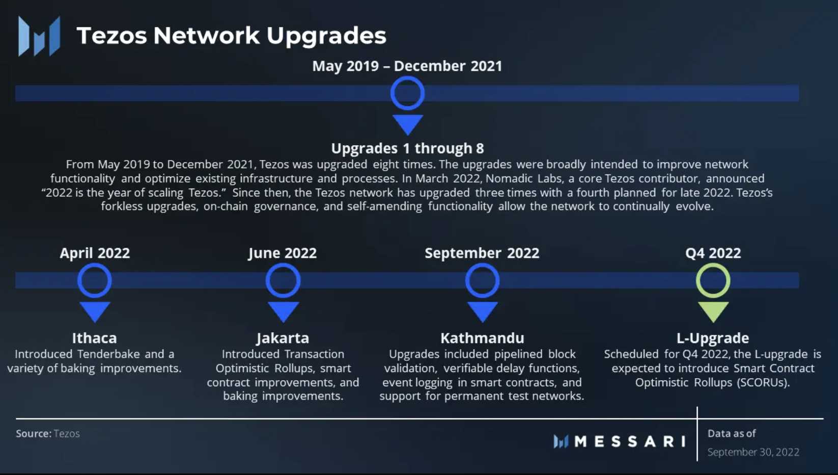 今年3月,Tezos的核心贡献者Nomadic Labs宣布:“2022年是扩大Tezos规模的一年。”从那时起,Tezos网络升级了三次。Tezos的无叉升级、链上治理和自我修正功能使网络得以持续发展。