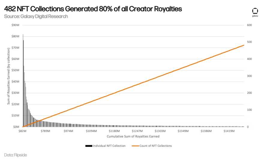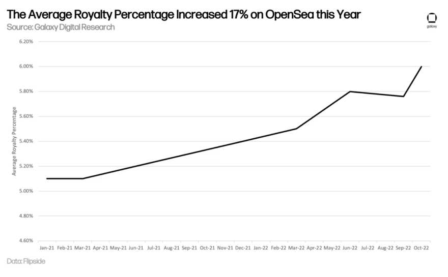 全网已经向基于以太坊的 NFT 集合的创作者支付了价值超过 18 亿美元的版税。此外,在 OpenSea 这个迄今为止向创作者支付最多版税的平台上,向创作者支付的平均版税比例在过去一年中翻了一番——从 3% 一路飙到 6%。包括传统玩家和加密货币原生组织在内的 NFT 主要品牌,已经从二级销售产生的版税中获得了数亿美元的收入。事实上,仅 10 个实体就占了所有版税收入的 27%,482 个 NFT 系列占了迄今为止所有版税收入的 80%。然而最近在更广泛的加密货币社区却出现了反对版权模式的声音,他们认为「版权」威胁到 NFT 诞生之初的价值主张。而现实情况是,版税并不是在加密世界中继承链上永久性的原生产物。