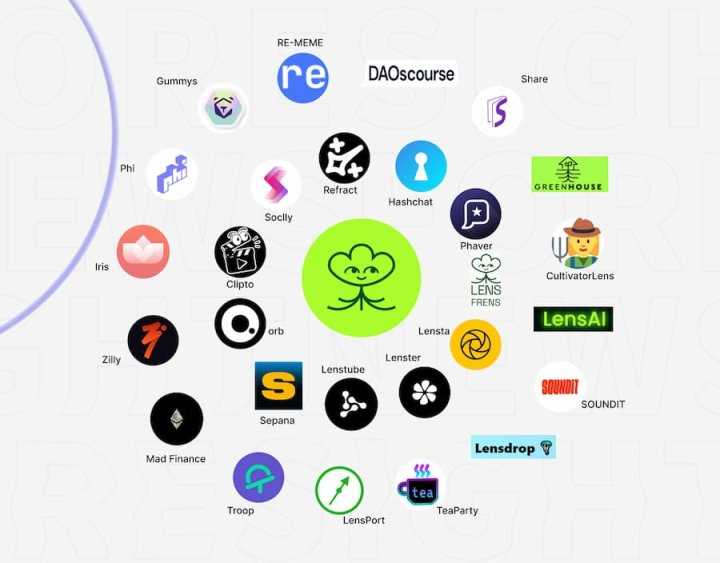 Lens 生态中目前较为出色的应用包括去中心化社交媒体应用 Lenster、可基于用户 Web3 足迹推荐 Profile 的 LensFrens、Share-to-Earn 社交应用 Phaver、链接趋势排行榜 Refract、去中心化「YouTube」Lenstube 等,也有针对创作者或资深人士的时间拍卖网络 Soclly、提供名人视频定制服务的 Clipto、AI 技术创作 NFT 图片生成器 LensAI 等相对创新的项目。