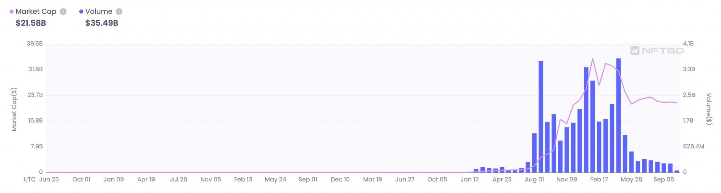 PFP 的辉煌一直延续至此。不过,今天五月之后,曾经不可一世的加密帝国 Terra 和 Three Arrows 相继倒塌,整个加密市场被卷入流动性旋涡,NFT 也随之降温。