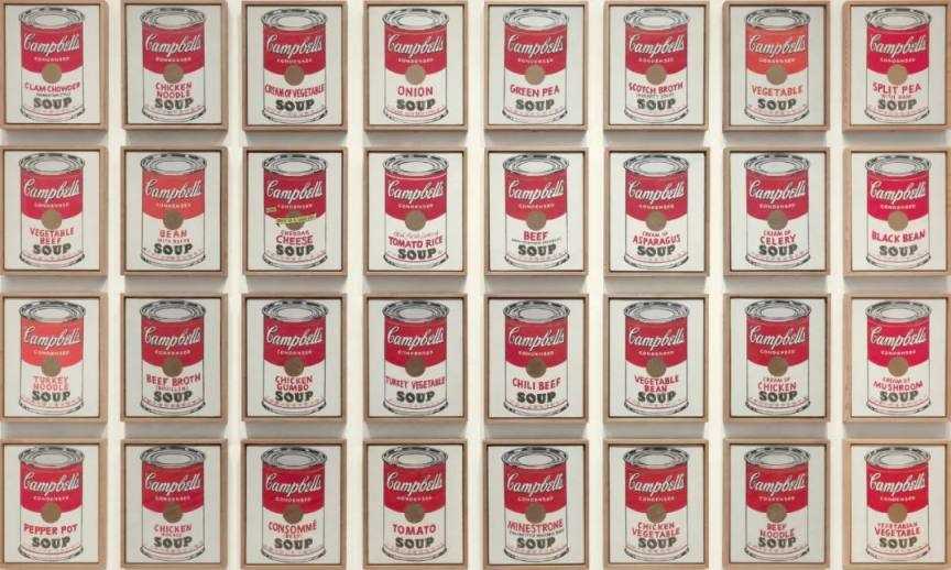 这是一组整齐排列的 32 个罐头,就像超市货架上的陈列,每一个看起来近乎一样,区别在于每个罐头标注的口味不同。这幅看起来略显「单调无聊」的《金宝汤罐头》却在 20 世纪后半叶掀起了一场艺术风暴,它的作者安迪沃霍尔被誉为波普艺术教皇,并凭借一系列近似风格的作品跻身世界顶级艺术殿堂,成为比肩毕加索、梵高的传奇艺术家。