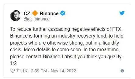 来源:https://twitter.com/cz_binance/status/1592044496174612482