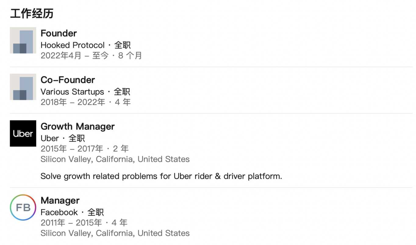 Jason Y 是 Hooked 合同的CEO,曾任职于uber和 Meta(原 Facebook),从业消费互联网及发展战略提高 10 多年,曾打造出几款商品,具备运营 web2 客户过亿的工作经验。依据 A&T Capital 公布,Hooked 协议书团队人员是来自于腾讯官方以前投入的米读(阅文集团旗下)文字类提高服务平台,管理团队拥有丰富的 2C 品牌推广经验与很强的产品设计能力。在 Jason Y 领英中,其隐藏起来 2018 年到 2022 年工作中,但据多个新闻媒体,米读的 CEO 杨骥在 Facebook 和 Uber 工作时间与 Jason 一致,在今年的 10 月也是有传闻称杨骥从米读辞职。Jess L 是首席营销官,曾任职于uber和谷歌搜索,从领英的数据来说,她们二人要在uber时同事。