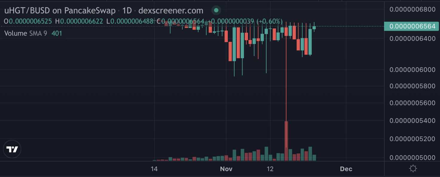 HGT 交易体制为应用内购买 NFT、提高游戏感受、开启高端奖赏。赚到的 HGT 货币还可以与 HOOK 货币开展变换。uHGT 现阶段货币价格是 0.00000065 美元,流动池 USDT 总数为 9900。