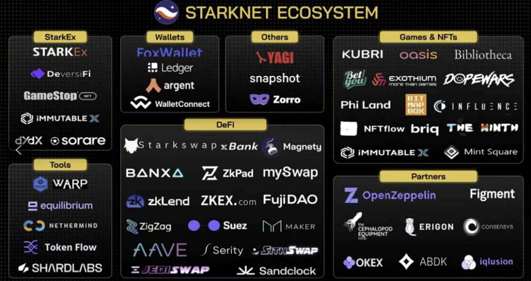 生态项目: dydx、sorare、immutable、deversifi、celer、argent等。