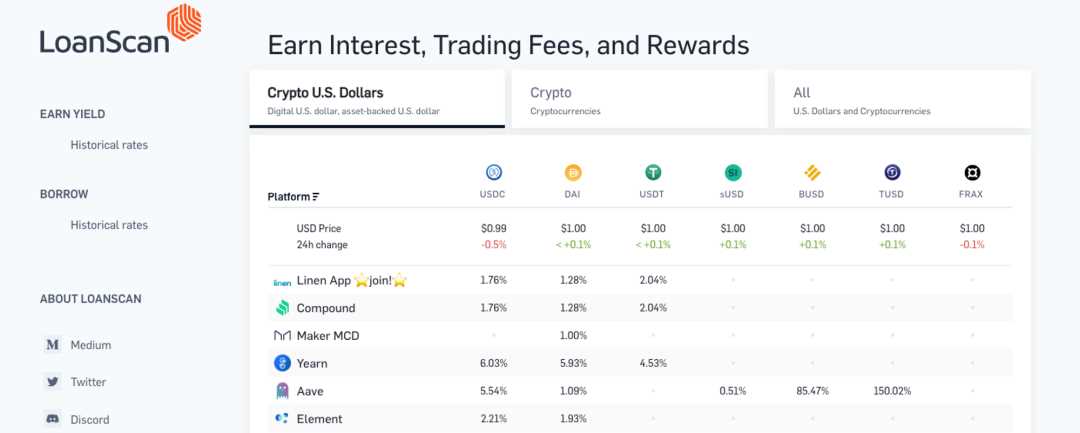 2022 年数据加密严冬来临,当诱人 APR 不会再时,大家开始转为探寻无风险收益率,而货币变的真实世界资产已经改变资产管理和投资方法。作为一种极为重要的融资方式和金融衍生工具,债券是风险性相对较低的紧急避险资产和固定收益投资种类,尤其是美国国债利率一般被誉为市场中的无风险利润。而因为上轮大牛市曾树立 20% 利息 UST 等高回报新产品的爆雷正严厉打击着投资人的自信心,且主推高收益率的 DeFi 行业收益率呈现也不尽人意。以借款领头新项目 Compound 和 Aave 为例子,LoanScan 资料显示,截止到 5 月 8 日,USDC 在Compound 和 Aave 里的定期存款利率则降到 1.76% 和 5.54%,远远低于美国国债利率。