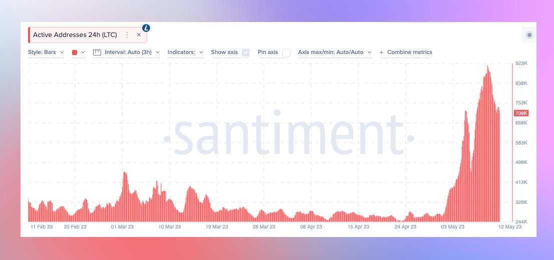 此外,自 5 月 3 日发布 LTC-20(BRC-20 代币规范在BTC上的一个分支)至今,莱特币的链上主题活动一直在悄悄的提高。以往一周的成交量比以往任何时候都需多。