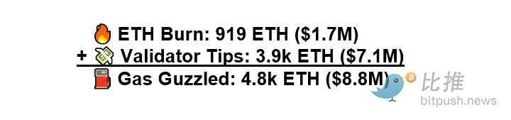 上星期,以上帐户为以太坊互联网形成了 32300 美金(5950 万美金)费用,在其中 26200 ETH 已经被消毁,造成以太坊供货收紧同时向持有者退还使用价值。