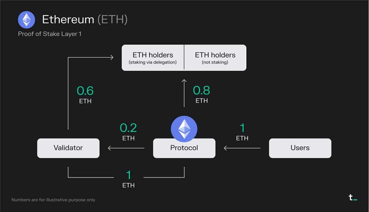 验证者从区块奖赏中获取 1 ETH(新发行的 ETH)