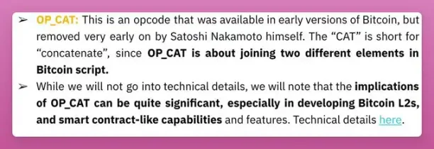 目前,符文的交易体验与 BRC20 没有太大区别(虽然 Magic Eden 做了一些 UI 改进)。但像 OP_CAT 这样的比特币软分叉(或基于此的炒作)可以为比特币 L2、智能合约和所有 BTCFi 空间带来重大改进。