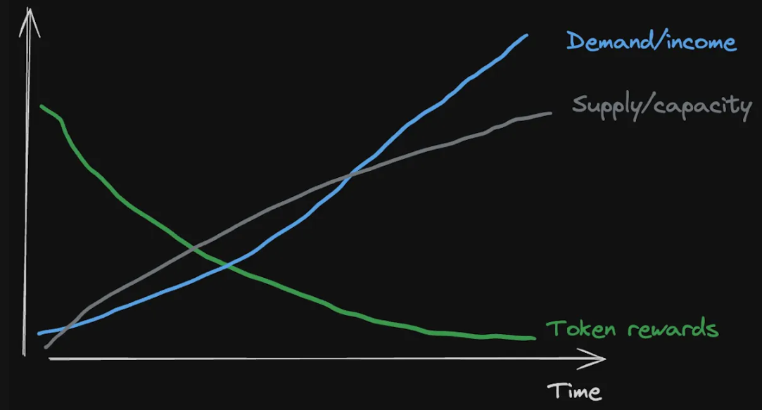 通胀性代币奖励激励节点运营商在需求尚不足以单独覆盖成本时提供所需的基础设施