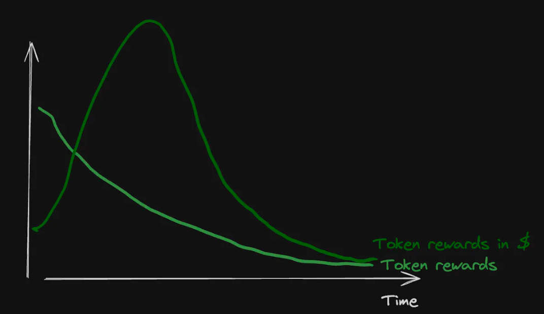 正如我们在对奖励排放时间表的分析中所描述的那样,这些代币奖励的美元价值(代币价格)在很大程度上受到整体市场情绪的影响。因此,它们可能如下所示: