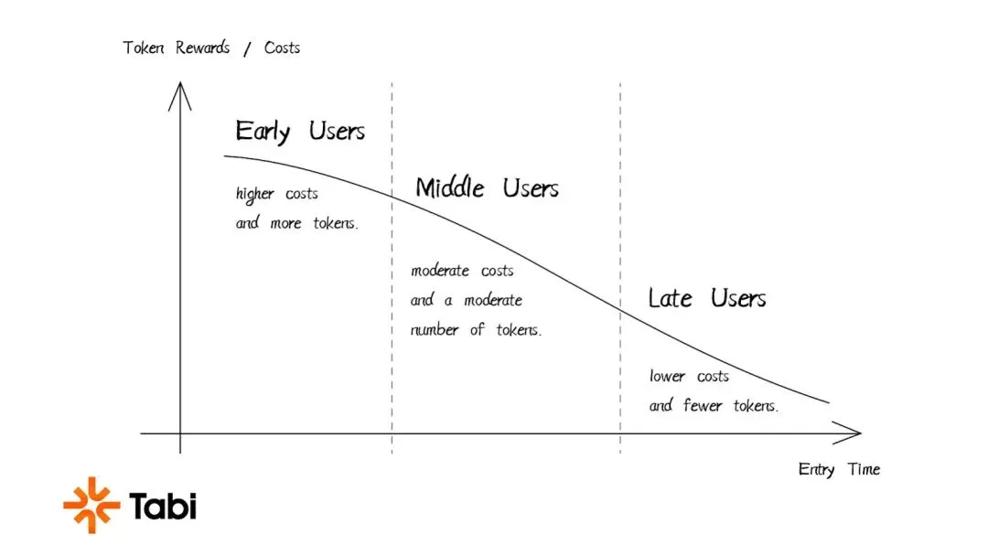 - 早期进入用户 = 付出更高的成本 = 获得更多的token