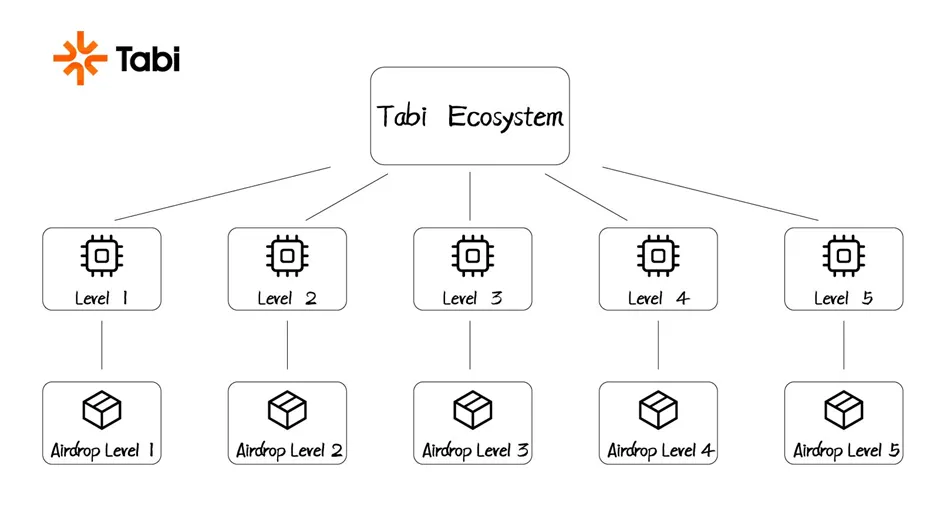 Tabi node售卖的等级一共分为5个等级,每个等级的矿机一经推出对前面的矿机具有一定的优势,而且我们Tabi生态的新项目可以针对自己的需求给予不同用户级别空投。