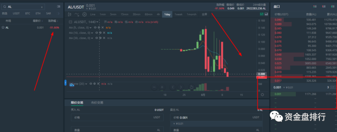 看AL这个币的挂单,真的如客服所说,价格真挂在了0.001。这就是项目方把投资者按流程套在山顶的结局。不卖就归零,卖了亏损90%。你说韭菜难不难。