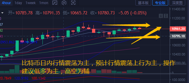 综合来看日内行情主要在区间10750-11050区间震荡,目前行情涨幅放缓,但整体多头占据优势,晚间汐柔预计震荡上行为主。关注下方10750附近支撑,上方关注11150阻力压制,操作建议低多为主,高空为辅。