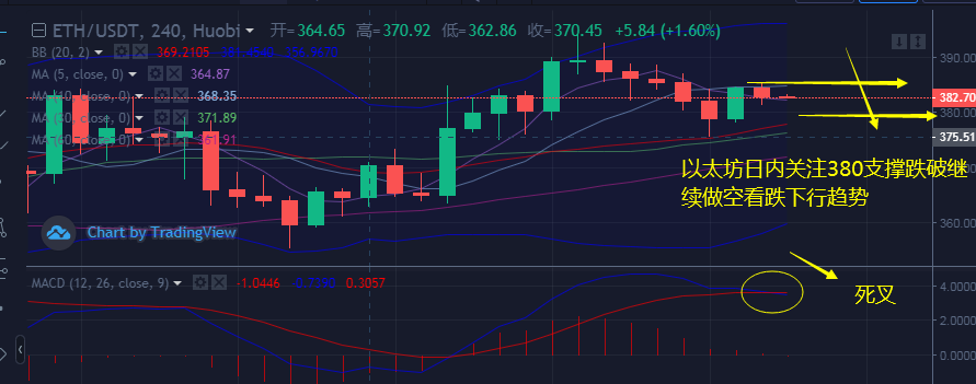 策略一:以太坊380跌破做空,止损4个点,目标375跌破看370.
