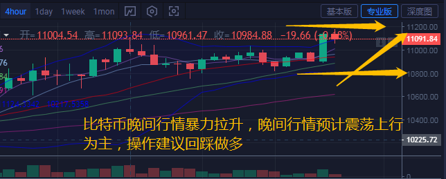 综合来看,日内行情主要在区间10800-11000区间震荡,今日晚间行情暴力拉升后回踩,波动区间向上伸展,汐柔预计晚间震荡上行为主。关注下方10800附近支撑,上方关注11200阻力压制,晚间若企稳11000上方,预计还有进一步上行趋势。汐柔建议晚间操作思路回踩做多,建议低多为主,高空为辅关注公众号:币汐柔。