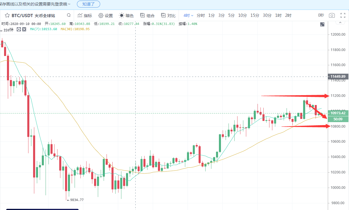 1.回踩10950附近分批布局多单止盈100-200点,止损80点