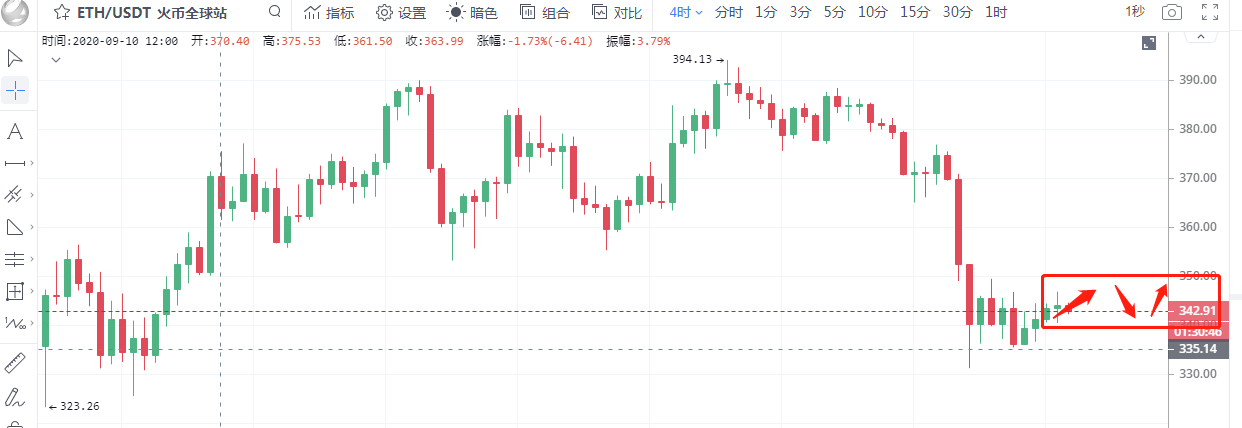 ETH行情分析:昨日以太坊同样走着一个震荡上行的行情。从日线上看,昨日收小阳线,行情有一个小幅上弹,行情反弹相对较弱,仍是一个暴跌后的行情修复整理。上方短暂压力位350,若行情突破企稳此线,币价或将进一步上行。