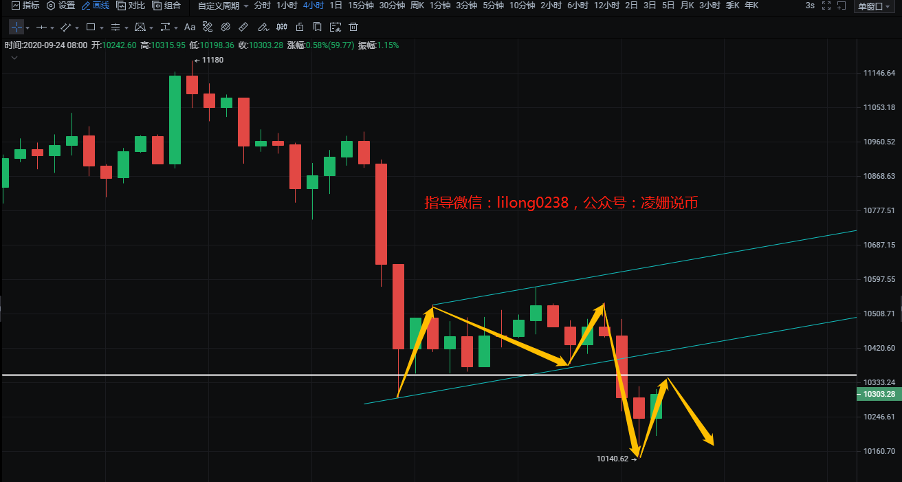 比特币四小时级别来看价格昨日晚间突发跳水跌破上行通道下行,目前四小时收线不到两个小时保持阴阳反转形态,日内关注先反弹做空,5日均线下穿10日均线运行,前面已经多次说的本次上涨浪已经结束,后面还将下行,10000关口再次面临多空博弈焦点,幅图指标MACD于0轴下方死叉运行,KDJ指标三线向下拐头,RSI指标三线拐头向上散发。上方压力位10350-10400,下方支撑位10140-10000。操作高空为主,低多为辅。