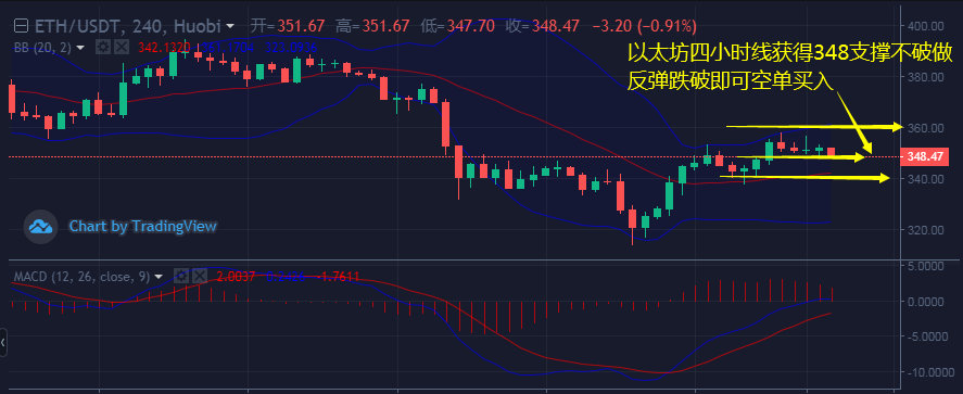 策略二:以太坊企稳348-350区间多单买入,止损4个点,目标355-358.