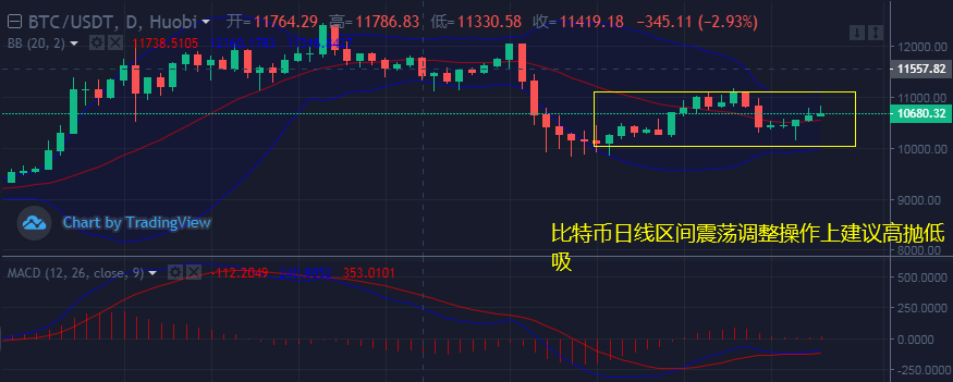 策略二:比特币反弹至10850一线做空,止损10950,目标10700-10600.