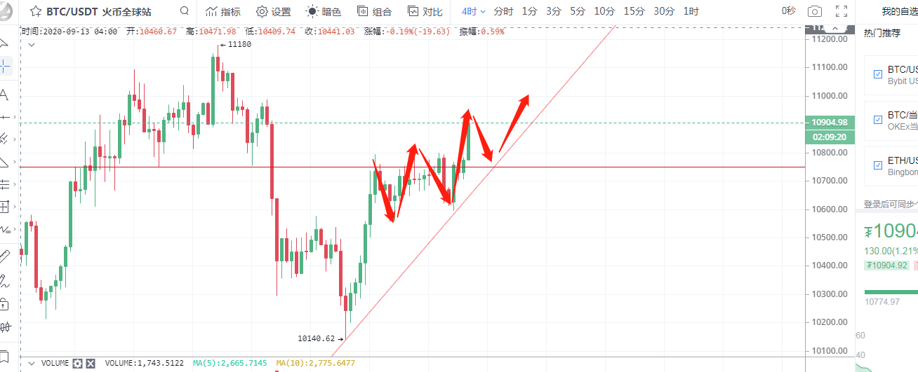 比特币行情分析:从日线上看,昨日收取一根小阳线,币价多次上冲10800一线未果,但今日早8点收线,一波暴力拉升至10954一线开始回落。5日均线上穿10日均线向上运行,币价运行在布林带中轨上方呈现上行趋势,既然打破10800一线支撑,币价后期或将进一步上行。