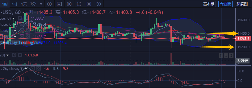 比特币早间八点左右回踩最低点11266附近后小幅度反弹,午间行情拉升至最高点11380附近后回踩,目前还是处在一种低迷的趋势当中,币价暂时稳定在11330附近。