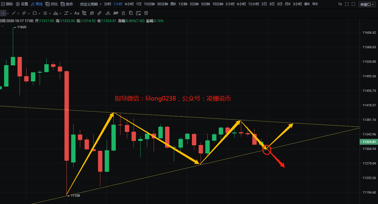 凌姗说币:10.17比特币以太坊晚间行情操作策略三角收敛震荡晚间关注区间破位