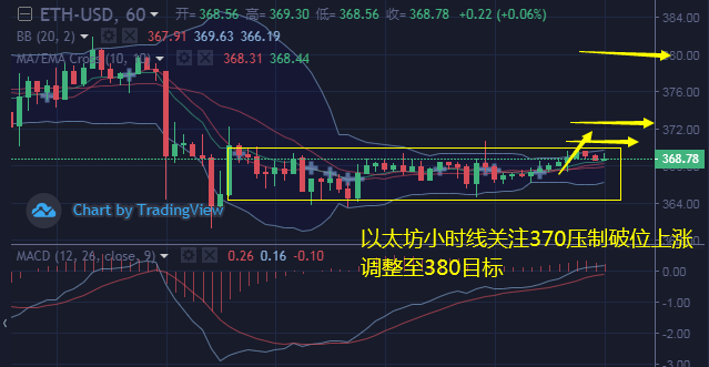 策略一:以太坊370涨破做多,止损4个点,目标375-378.