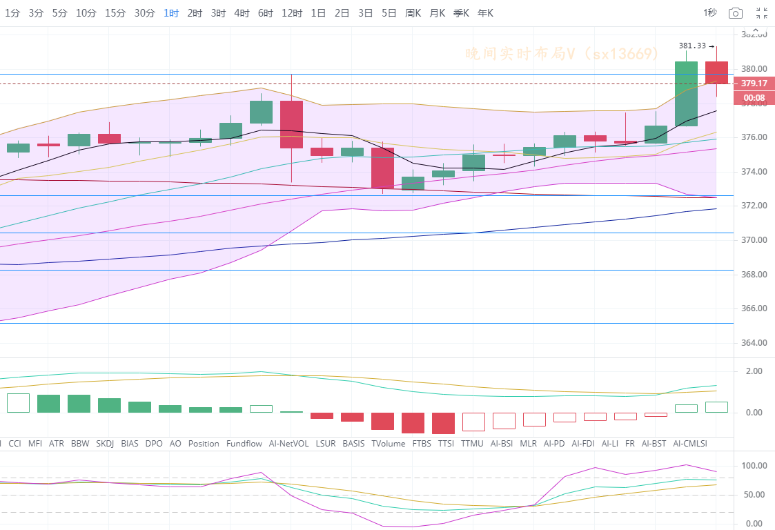 策略一:企稳380一线多单买入,止损4个点,目标384-387