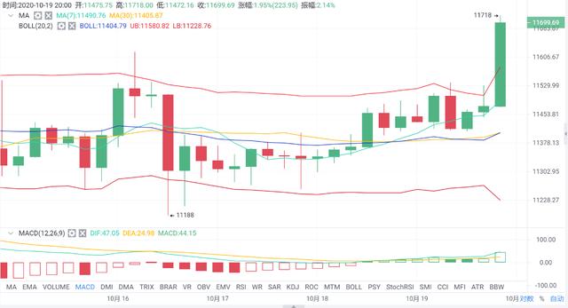 四小时图上看,布林带呈向上开口,各均线保持上攻姿态,行情保持在中上轨区域,站稳于五日均上方。目前价格在缓慢上探,已经站稳11500位置。BTC若是价格能够站稳11650位置,行情大概率会刷新日内高点,再度延续上行走势。走势偏向于多头,破位11700是关键。若无其他场外因素重回12000不是不可,谨防诱多即可。