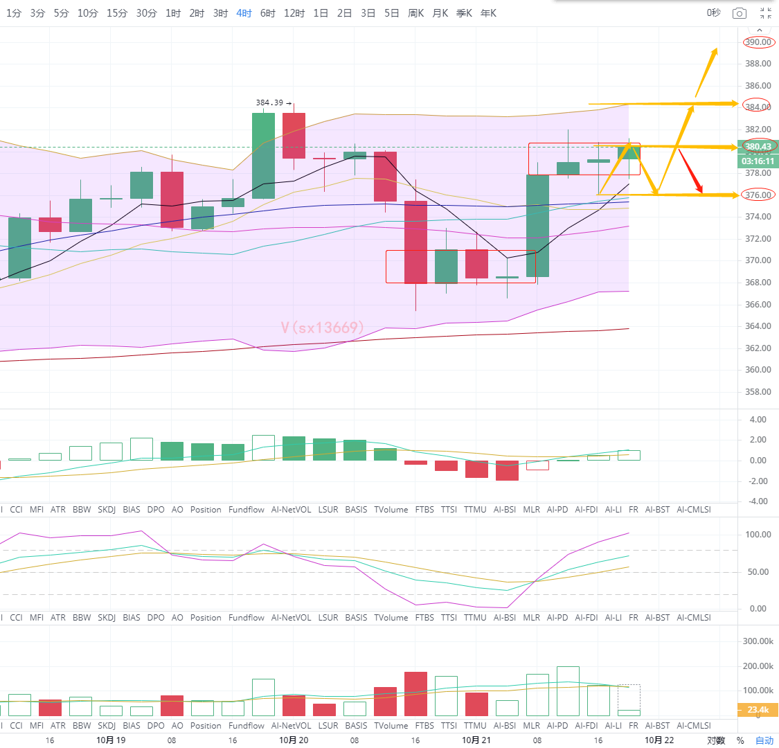 策略一:380附近多单进场,止损376,目标先看384,破位继续看387-390