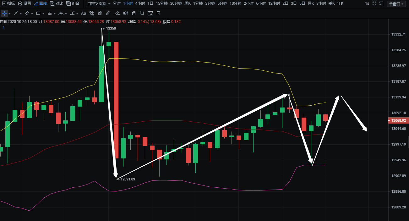 比特币小时级别来看价格于下午四点左右向下插针至布林带下轨12930美金开始反弹,日内整体维持窄幅震荡。价格自打破年线高点整体多头表现强劲,上方13200-13350分别为空头重要防守位置,各均线缠绕运行,凌姗预计走势还有反复。幅图指标MACD于0轴上方粘合运行,各项指标偏向震荡,关注下方12900支撑效果。操作上低吸为主。