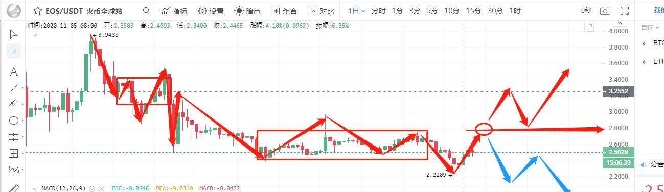 EOS行情分析:从日线上,布林带张口运行,K线运行在布林带中轨下方,5日均线与10日均线粘合支撑价格,附图中MACD双线开始交集有形成金叉之势,KDJ三线金叉向上发散,从形态上看,行情自下跌后开始反弹回到中枢内,若成功突破中枢压制即2.8一线,行情将开启上涨之旅,反之行情将延续下跌走势走出下降的一笔。综合来看,币友可以在突破2.8一线后在考虑进行买入。反之若不能突破,可考虑抛出。