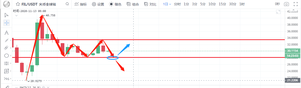 FIL行情分析:从日线上看,布林带逐渐走平,各均线缠绕K线运行,行情的波幅较小,附图中KDJ三线平行运行。FIL自发布以来直接插针,行情一落千丈,一直围绕在28-40区间运行。个人不是很看好这个币种,若无利好消息与主力注入,FIL将延续此局面。