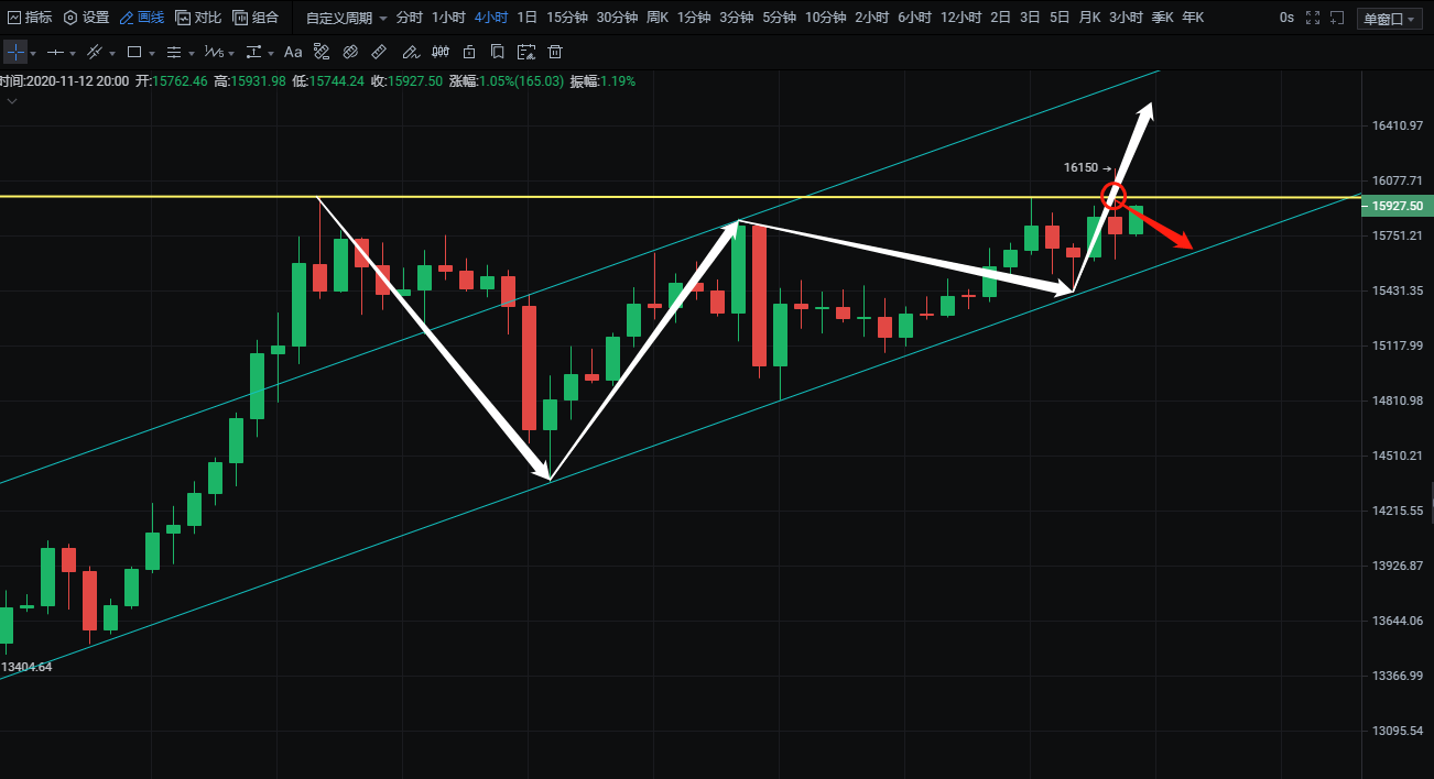 2:下破15800做空,止损100个点,目标15700-15600